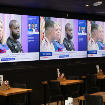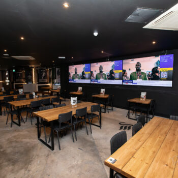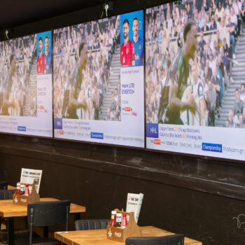 Technology plays a central role throughout The Swansea Jack. The venue features 37 televisions, ranging from 21-inch screens to impressive 100-inch displays. Behind them sits a sophisticated electrical and data infrastructure. Multiple matrix systems link every screen so they all display the same content at exactly the same time, creating a fully immersive sports viewing experience. Installing this system involved extensive cabling and careful coordination to ensure performance and reliability.