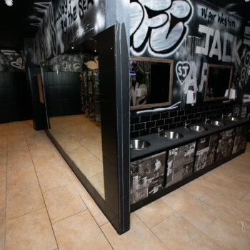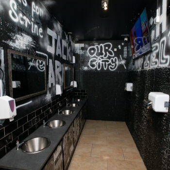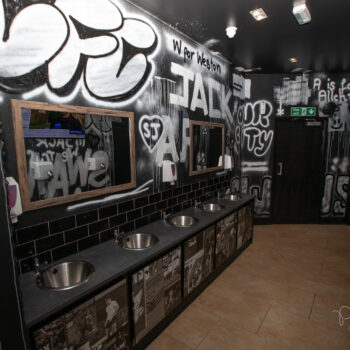 The ground floor was designed as the main venue space, where atmosphere and flow were critical. Upstairs, practical facilities such as male and female toilets sit alongside a standout feature, Pitch Queens.