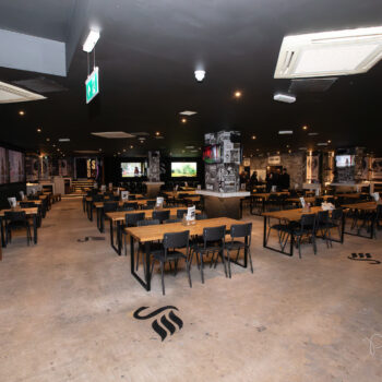 One of the most demanding elements of the build was the ceiling. Despite appearing straightforward, it required more than 140 litres of black paint. Sourcing that volume locally proved impossible, with supplies brought in from several parts of the country to keep the programme on track. Even securing suitable coverings at the required scale presented challenges, prompting on-site design adjustments, including resizing booths to ensure the final layout worked in practice.