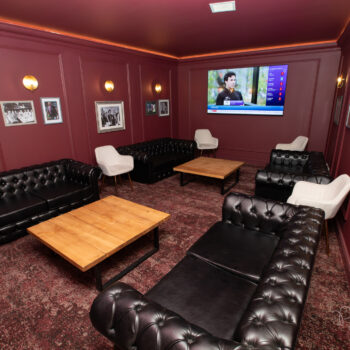 A key focal point of the venue is the Q&A area, designed to host players, officials and special guests. JM Building Contractors elevated this space to give it visual prominence, ensuring it naturally draws attention during events. Seating flows back from the stage, maintaining clear sightlines and flexibility for different types of gatherings.