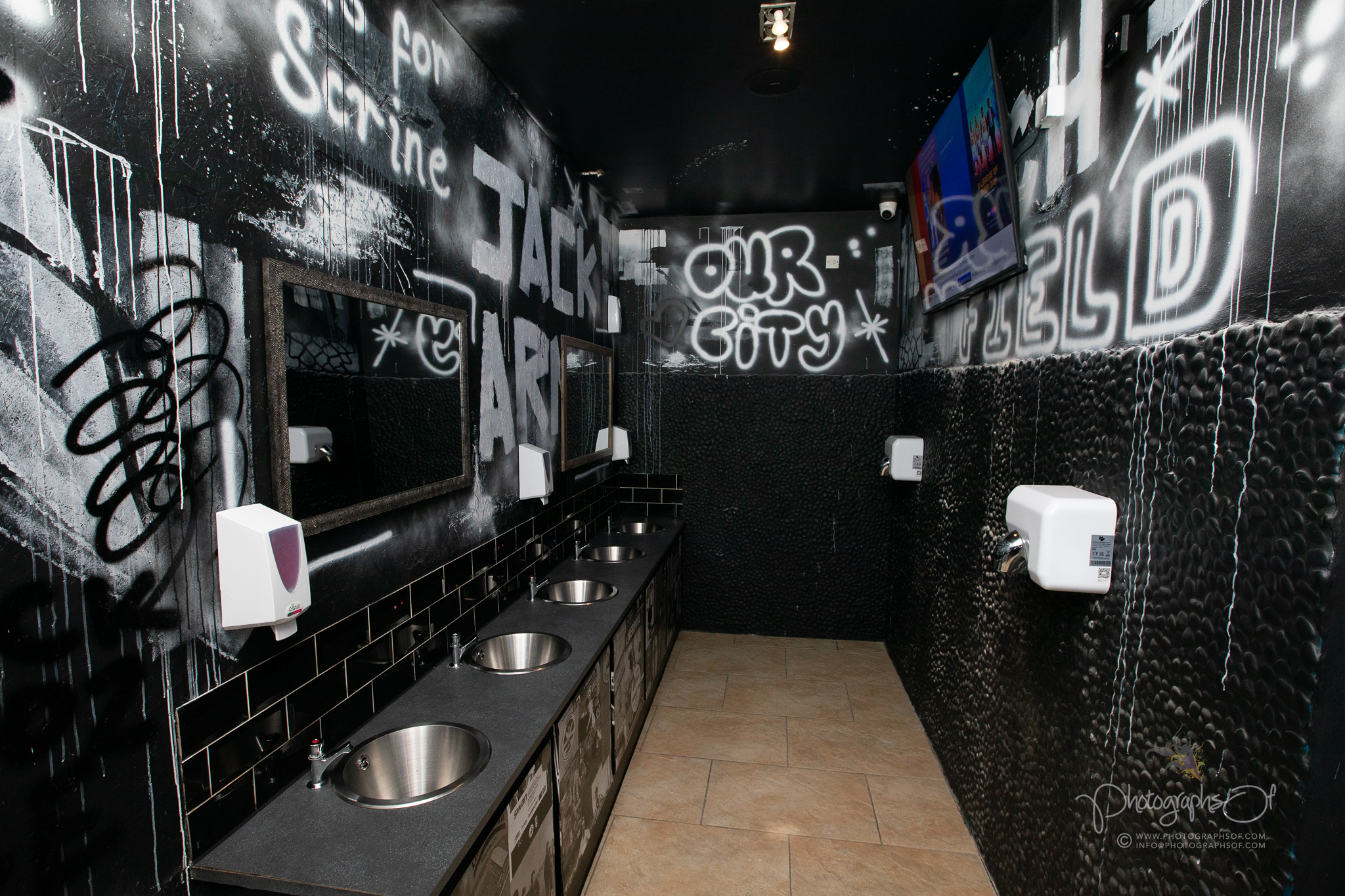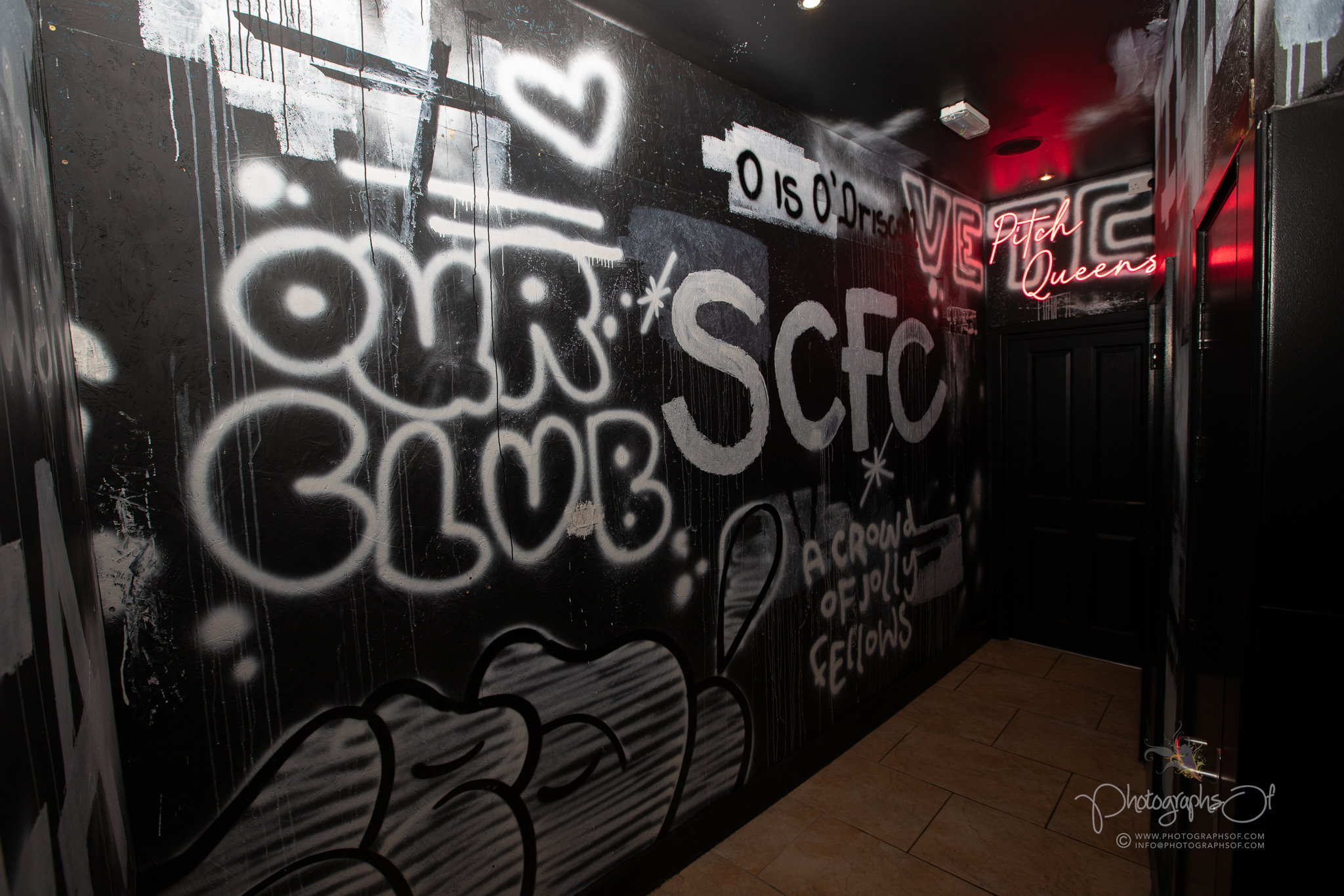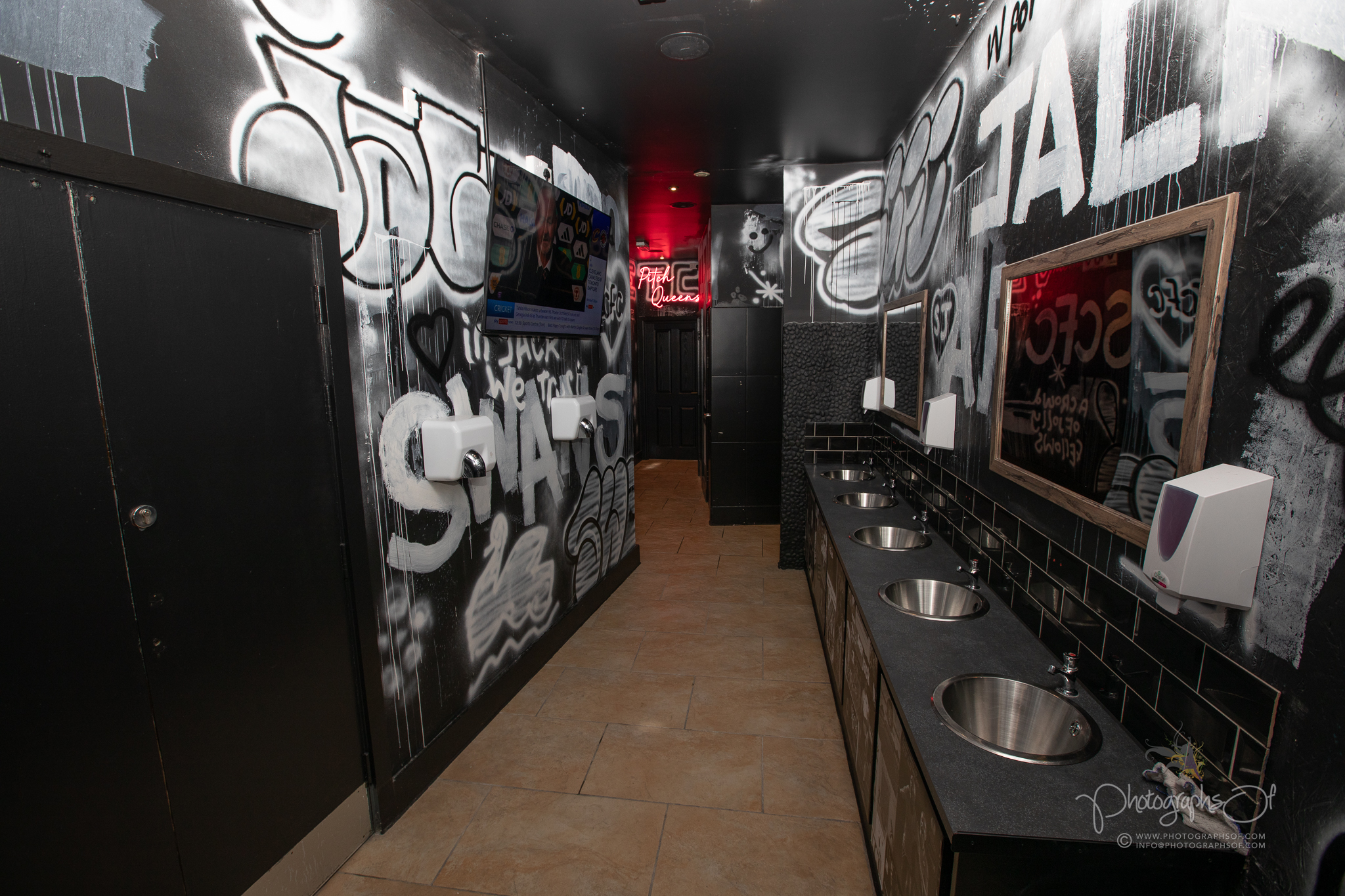 The ground floor was designed as the main venue space, where atmosphere and flow were critical. Upstairs, practical facilities such as male and female toilets sit alongside a standout feature, Pitch Queens.