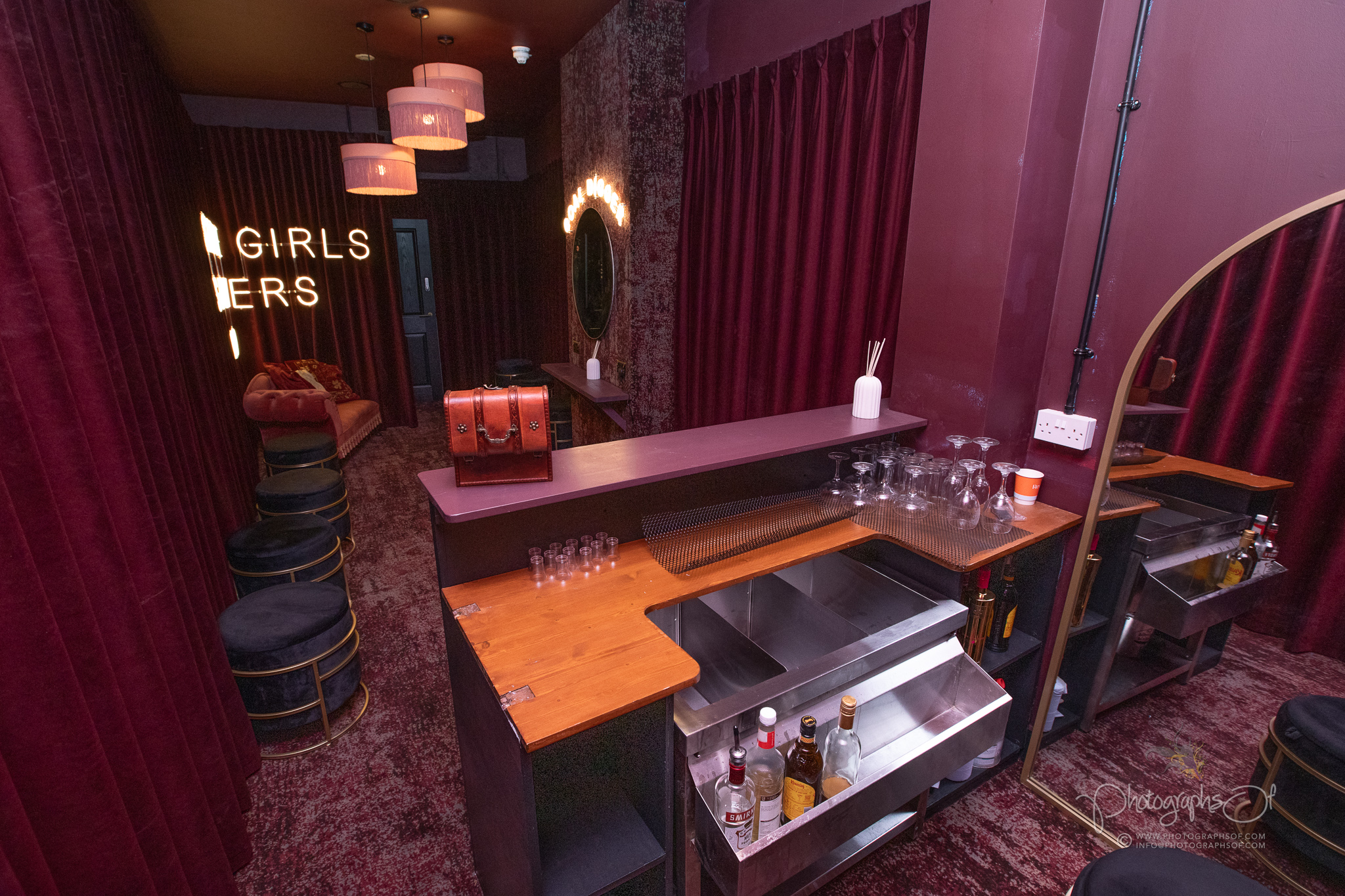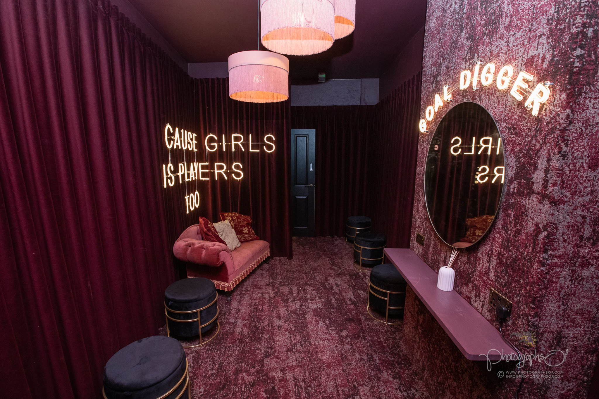 This exclusive private room offers a more relaxed experience, complete with cocktail service, make-up stations and chaise longue seating. It is a space that demonstrates how carefully the venue has been zoned to appeal to different audiences without losing cohesion.